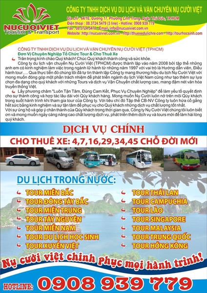 => Bảng báo giá dịch vụ thuê xe du lịch tại thành phố Hồ Chí Minh